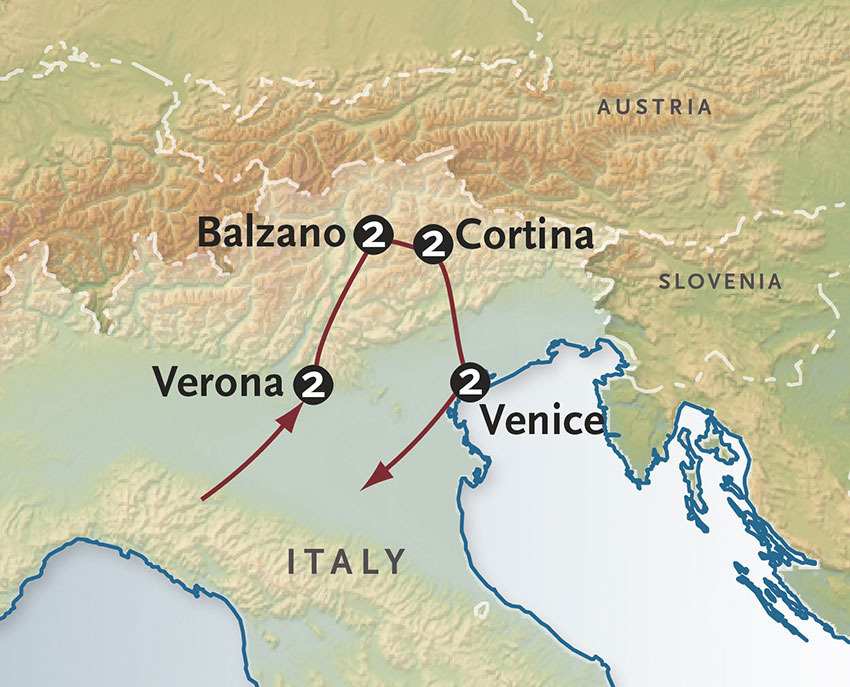8-Nights Verona, Venice + the Dolomites from $6,599