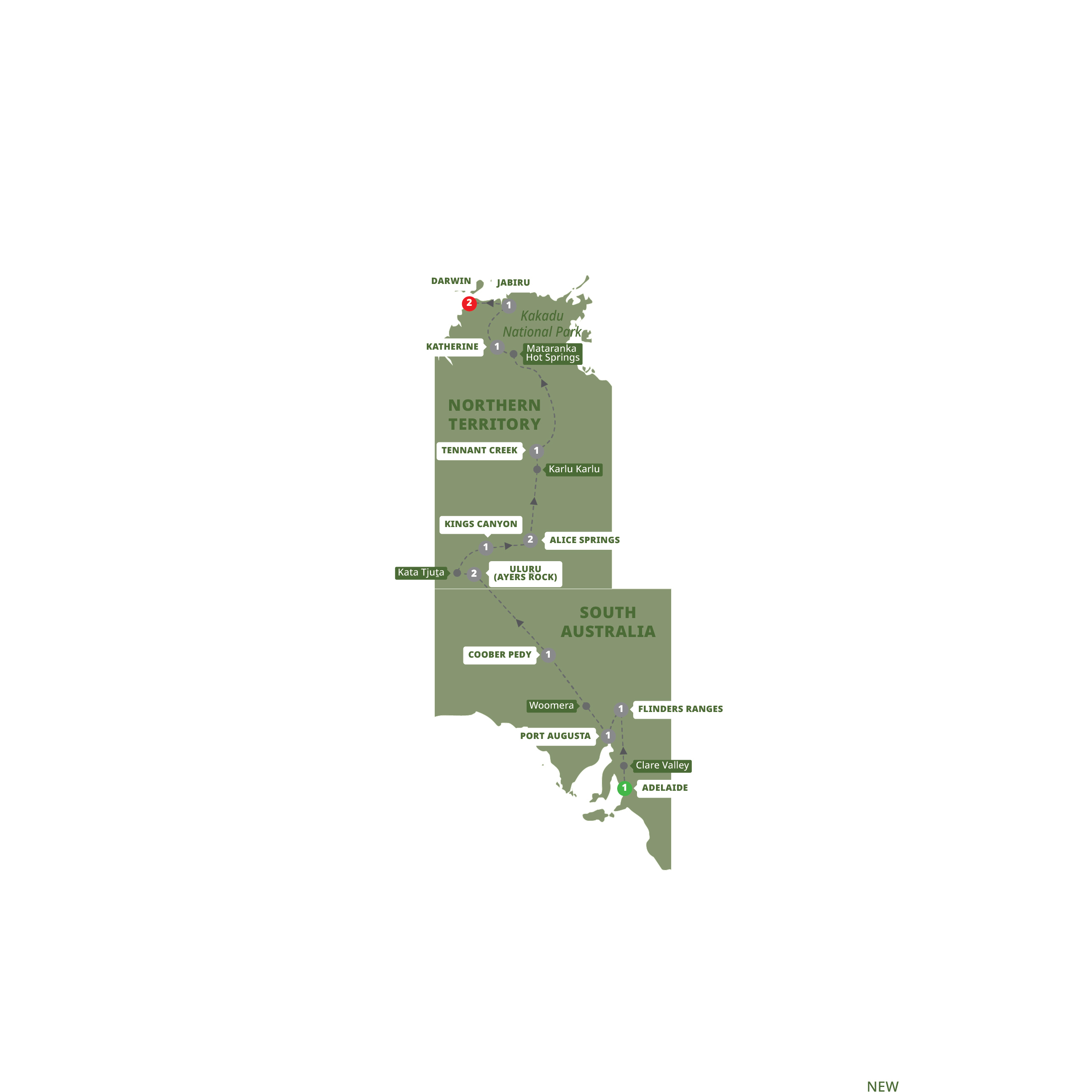 • Visit Wadlata Outback Centre in Flinders Ranges, Uluru-Kata Tjuta, Kakadu and Watarrka National Parks, Mataranka Thermal Springs, Kings Canyon & Ubirr Rock Art Site