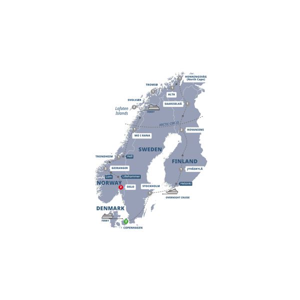Don’t miss a thing on this exhilarating Scandinavian trip. Your travels will feature fjords, glaciers and staggering scenery. Meet Santa Claus in Lapland, experience the friluftsliv of your Norwegian hosts and venture across the Arctic Circle to the land of the Midnight Sun.