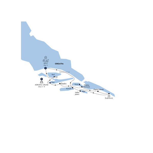 Experience the beauty and heritage of Croatia on this nine-day cruise along the Dalmatian coast. Begin in Split, exploring the remains of Diocletian’s Palace before sailing to Hvar, where Renaissance architecture and hilltop views await. Taste local olive oil on board, sample Dingac wine in a Pelješac vineyard, and enjoy a Farm-to-Table dinner in the village of Kuna. Explore Mljet National Park by boat and visit a 12th-century monastery on St. Mary Isle. Discover Dubrovnik’s Old Town and take in panoramic views from Mount Srd. Unwind on the island of Brac before ending in the UNESCO-listed town of Trogir. With swim stops, onboard dining and guided walks through historic towns, this journey offers a seamless blend of cultural discovery and coastal relaxation.